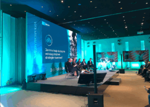 Rozwiązanie idealnie sprawdziło się w środowisku kongresowym, gdzie każdy centymetr zabudowy ma znaczenie, a jednocześnie liczy się efekt wizualny i komunikacyjny.